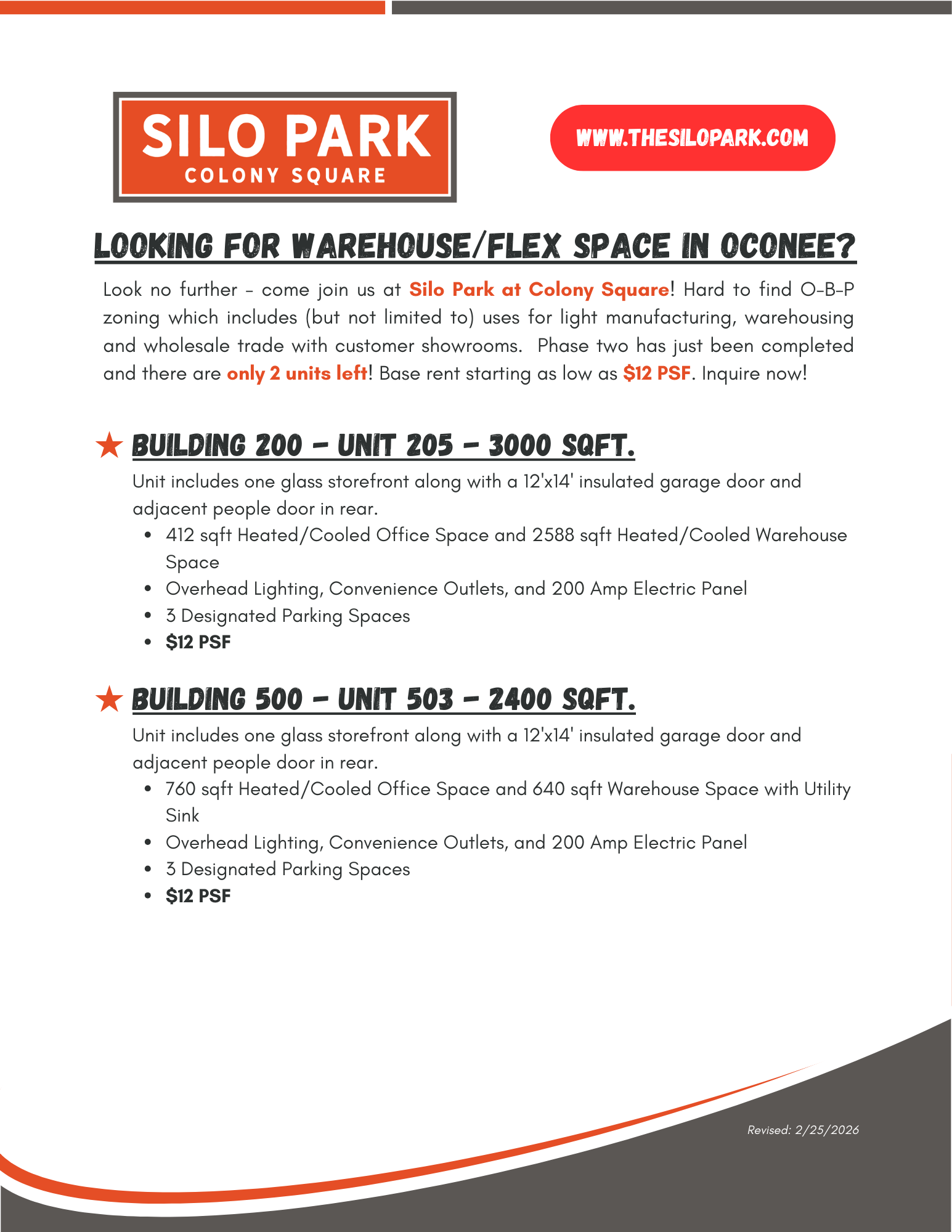 We are currently leasing 2 units! (2400 sq ft & 3000 sq ft).